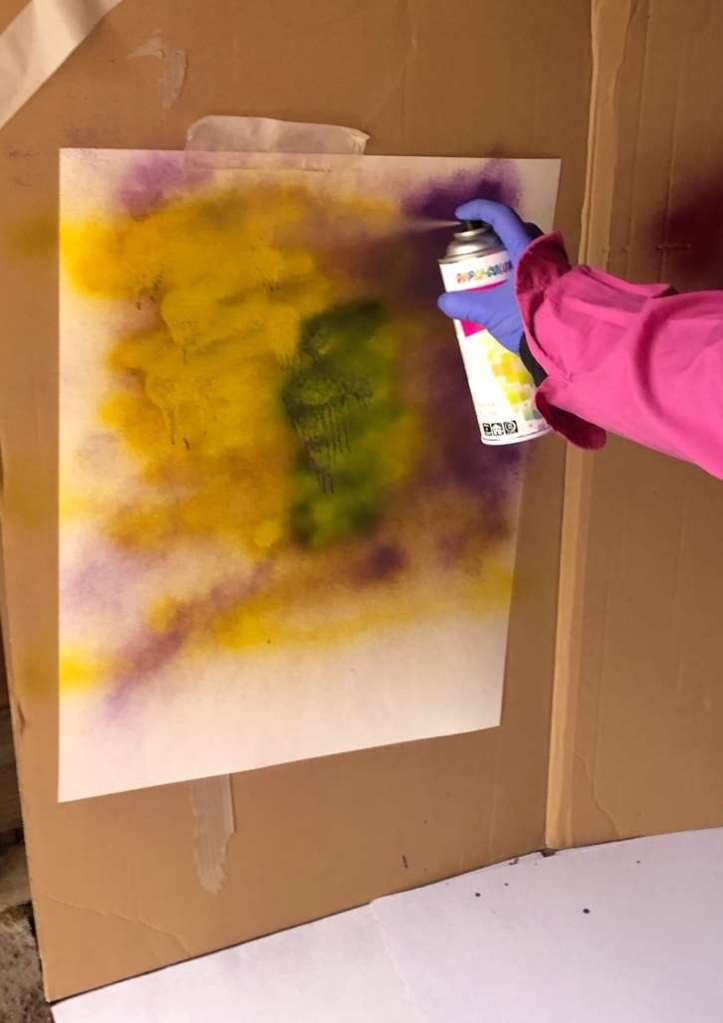 - Mehrere Sprayuntergründe dickes und dünnes Papier (diverse Formate), Pappe, Stoff etc.