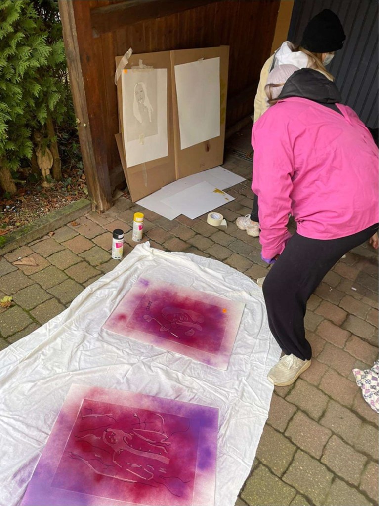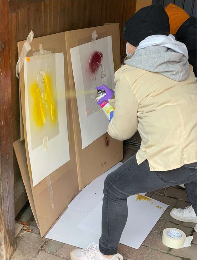 Insgesamt erhalten die Teilnehmenden durch die Stencil-Methode einen Einblick in die Entstehung von Graffitis, ausgehende vom eigens erstellten Foto bis hin zum Sprayen mit Hilfe einer selbst erstellten Schablone. Dieser Ablauf bildet eine passende Mischung zwischen dem klar strukturierten erlernen einer neuen Technik und dem eigenständigen und freien Erproben.