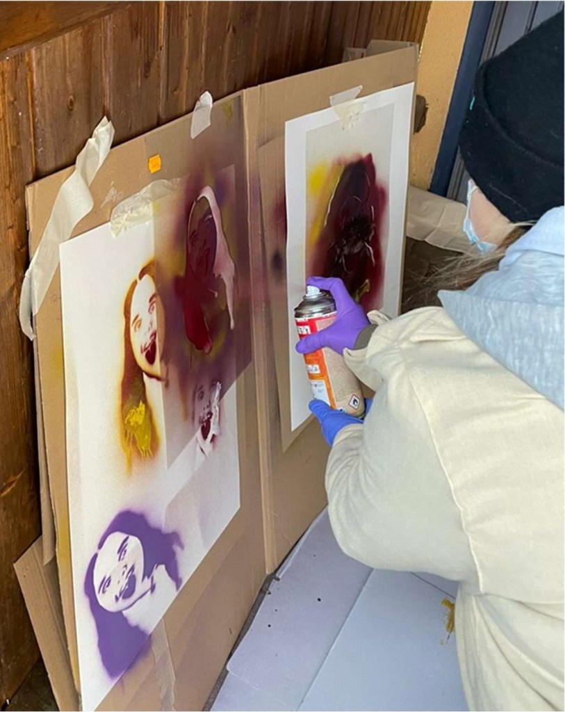 - Freies Sprayen der Schablone auf möglichst unterschiedliche Untergründe