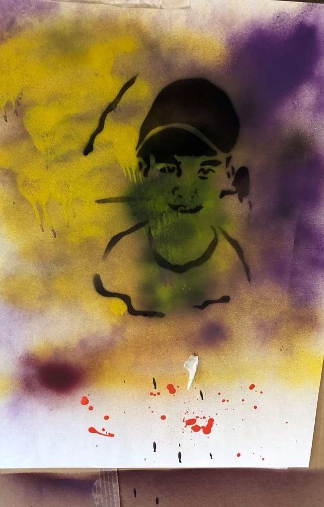 Mit Hilfe der Präsentation eigener Werke sollte die erlernte Stencil Technik und die Rezeption von Banksys Stencil-Arbeiten miteinander in Verbindung gebracht werden.