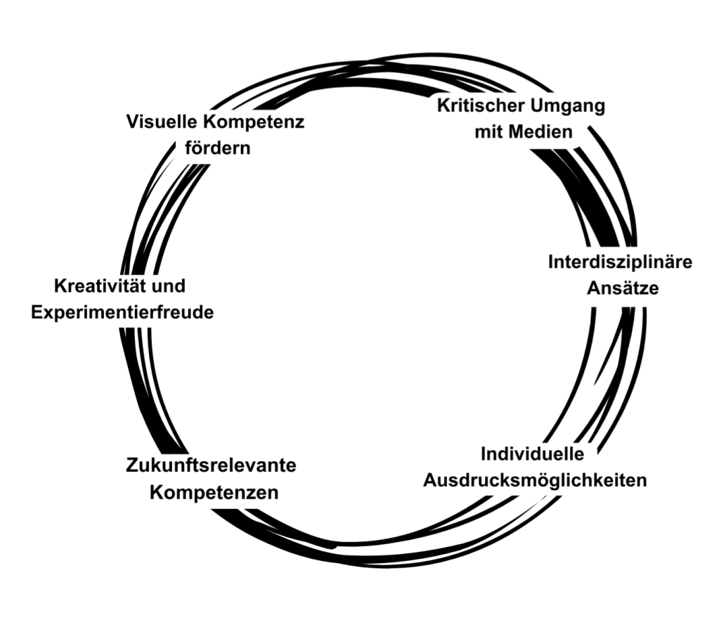 Medien verbinden Kunst mit anderen Fachbereichen wie Informatik, Sprache, Geschichte oder Sozialwissenschaften. Themen wie Mediengeschichte, technologische Entwicklungen oder Ethik lassen sich aufgreifen und fächerverbindend erarbeiten.